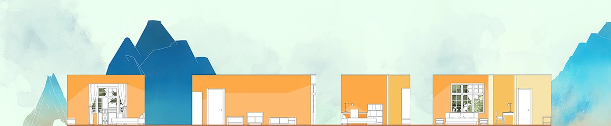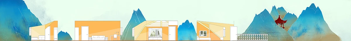 颐园的设计是消解传统理解模式、习惯,辩证地讨论“身体”和“对象”的互动,通过一系列生活的状态尝试各种微弱的空间界限,感知生活的本质。设计是一系列思维方式叠加后期体验的尝试。“事件”动态地发生在颐园内,不同的情境发生在空间内,形成复杂、模糊、交织、混沌的探索生活本质的过程。