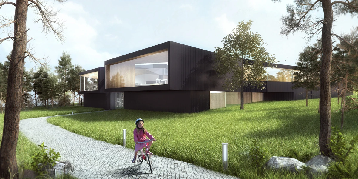 设计利用地形划分功能区域,将主要的生活区放置在一层,其余辅助区放置在地下室,如车库。因存在近一层高的自然地势落差,地下室北侧与土壤想接,一层生活区域往北延伸并围绕成一个半开敞的庭院。后根据功能分区以及流线控制的需要将建筑主体分为两个单体,其用可观景的玻璃走廊连接,私密空间放置北侧,毗邻中庭,可以观赏到隐逸的树林,营造出一种非常宁静优雅的气氛。活动区域放置南侧与私密空间对望,分明的功能划分使得室内空间得以充分利用并很融洽的与屋外环境相融合。使得业主既能感受到自然的气氛又能远眺开阔的湖面,让人在一种愉快而放松的状态下交流,生活。