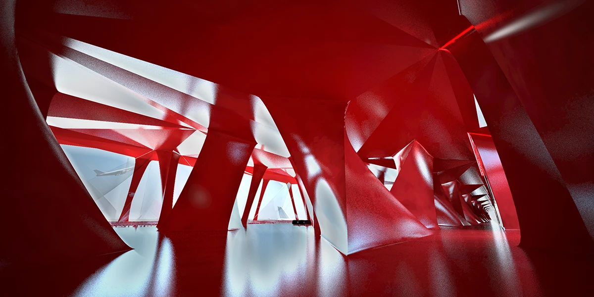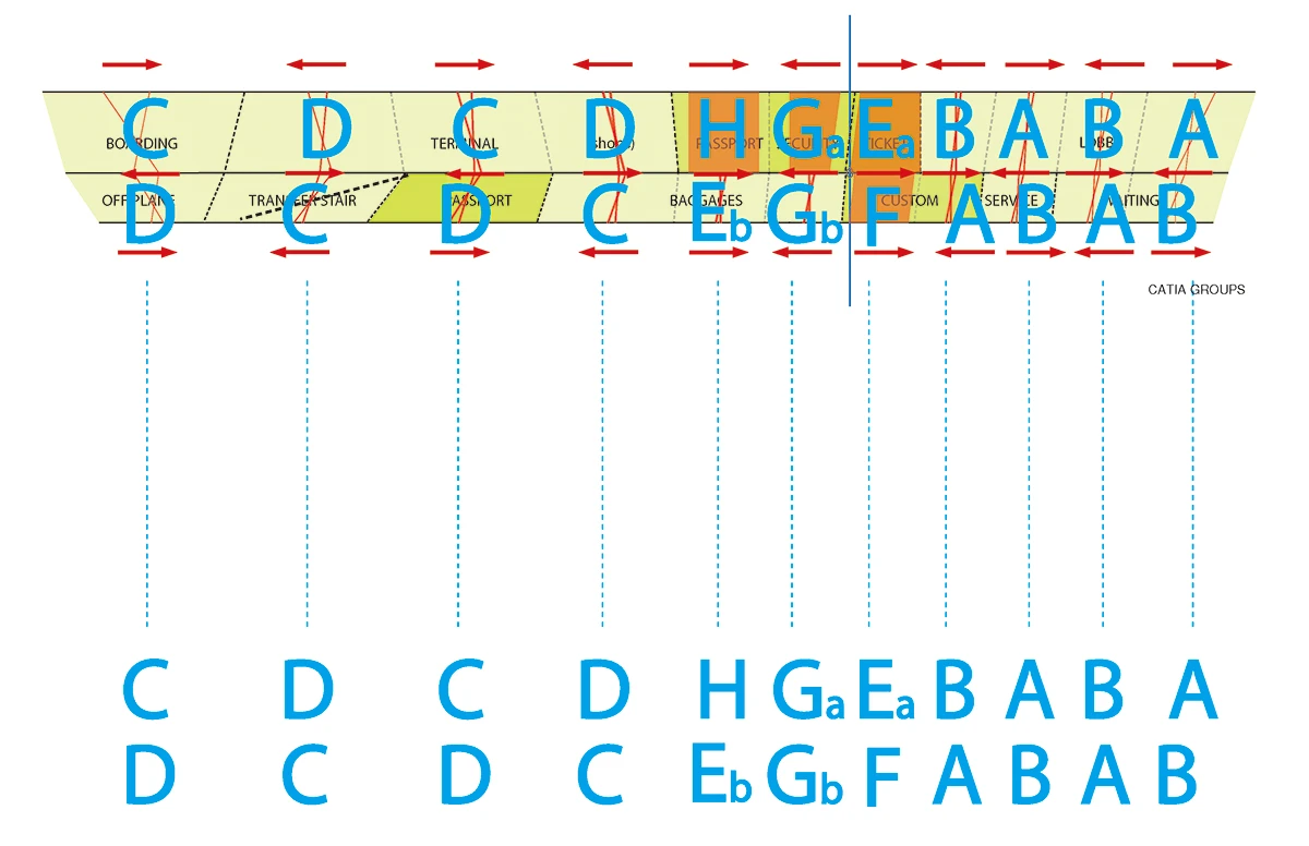 我们对罗马尼亚首都机场的设计抛弃传统参数化建筑设计的软件,采用了造飞机的软件CATIA。CATIA源于航空航天工业,被用于Boeing777飞机除发动机外全部的机械零件设计。它利用图形的几何关系及点云之间的关系法则对产品进行参数化的设计。利用CATIA不是为了使设计变得复杂,我们在这个设计里恰恰是通过对一个点和三条线的调整来控制结构的走向,设计变得简单化,而对于这样拥有庞大复杂功能和流线的建筑而言,越少的控制量也可以保证结构体之间的搭接越精确。通过CATIA,我们希望在多种形式与功能排布的可能中寻找一种合适的解决方案,不仅对飞机场这种庞大复杂的建筑有个宏观、理性的把控,更使之脱颖于传统的飞机场,在统一的设计语言下形成自己独特的性格。