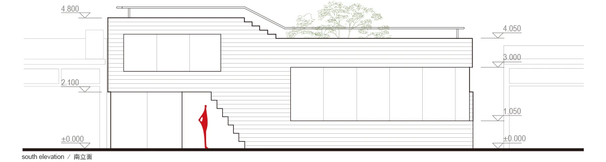 建筑主体功能:占据沿街面,将兴趣课堂,展览,茶室,休闲露台流线型串连,面向胡同开放,自然而然的引导周边居民参与文化艺术活动。