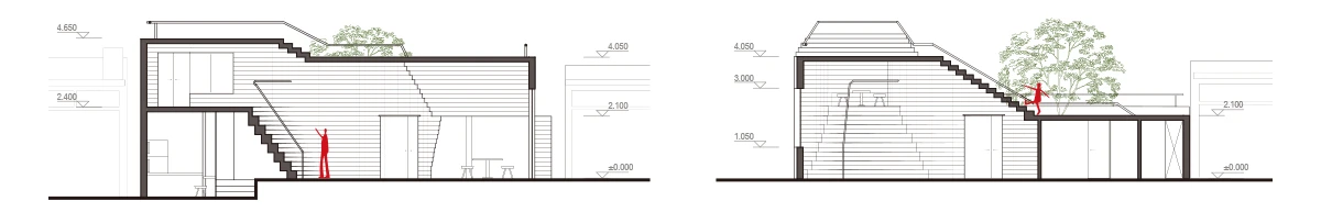 夹层平面: 从下沉庭院出发,将展开一系列丰富的交流、展览、书籍、茶食空间。建筑内部功能以展览,兴趣课堂,咖啡简餐为主,一侧向胡同开放,不仅极大的提升了社区的文化艺术气质,还为居民提供了一个休闲放松和自我提升的契机;另一侧则与庭院流通,有效的激活了室内外的空间活力。建筑空间内外衔接,相互贯通。