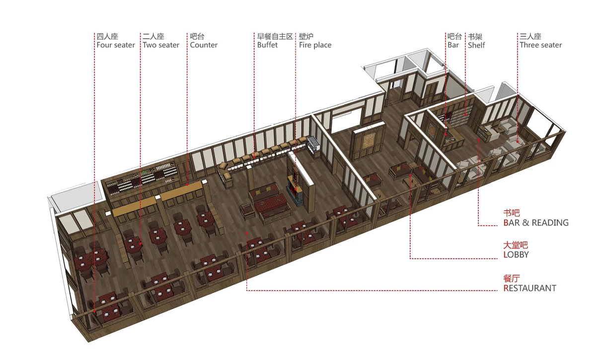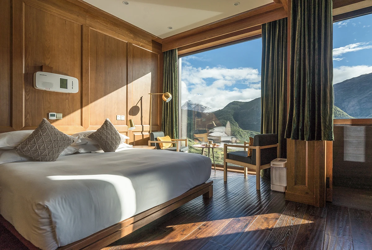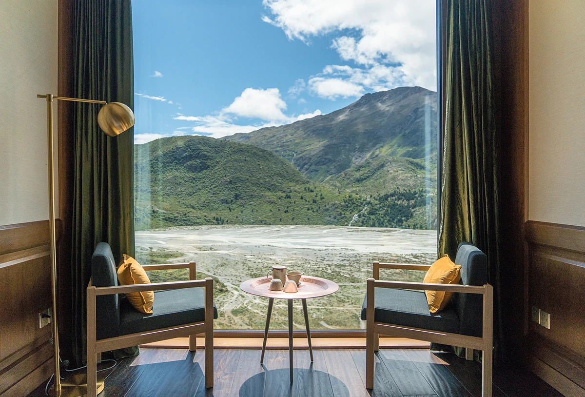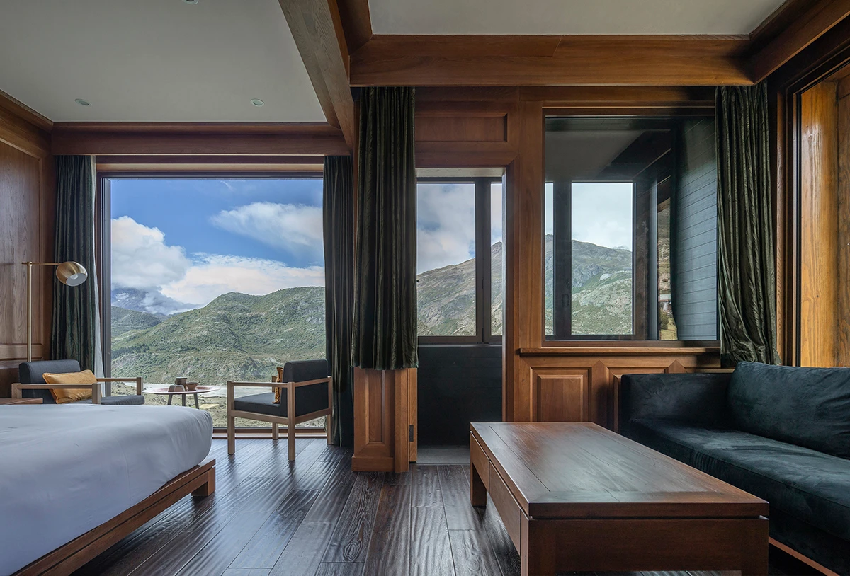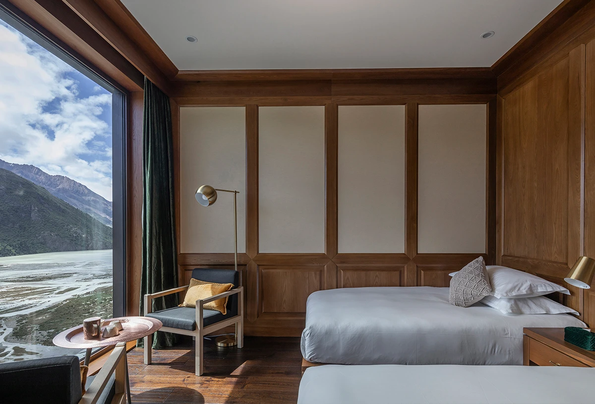 可以完全适应4200米海拔低氧环境的旅行者很少,想要让人们更好的在松赞然乌欣赏远古风景、接收香巴拉文化,供氧是必须解决的问题。因此我们设计了完整的供氧系统上下贯穿各个空间,使之达到2000米海拔的含氧量。同时为了营造温暖、可依赖的居住体验,在室内设计上,我们选用了亲切的麻料触面和敦厚的家具设计,在来古严峻的自然环境下都给旅行者以强大的安慰。