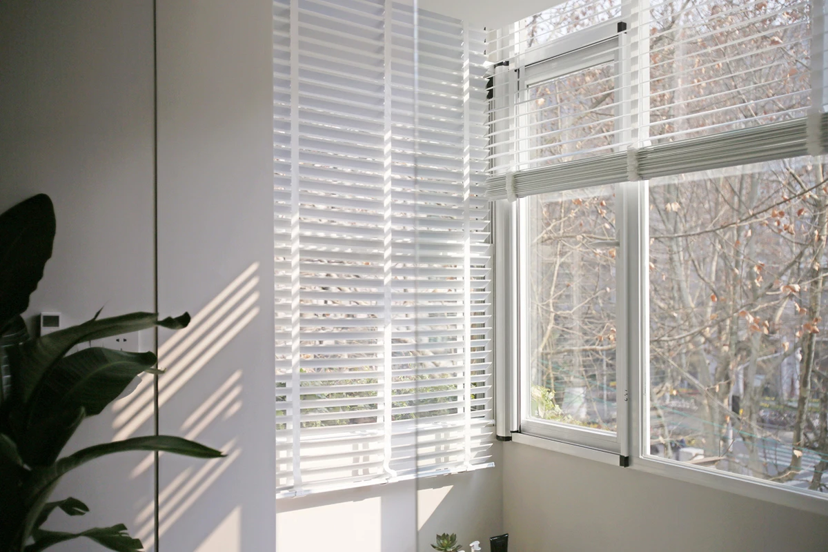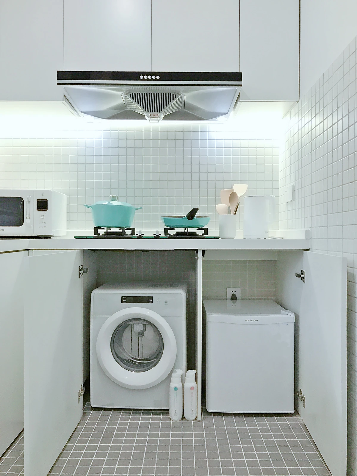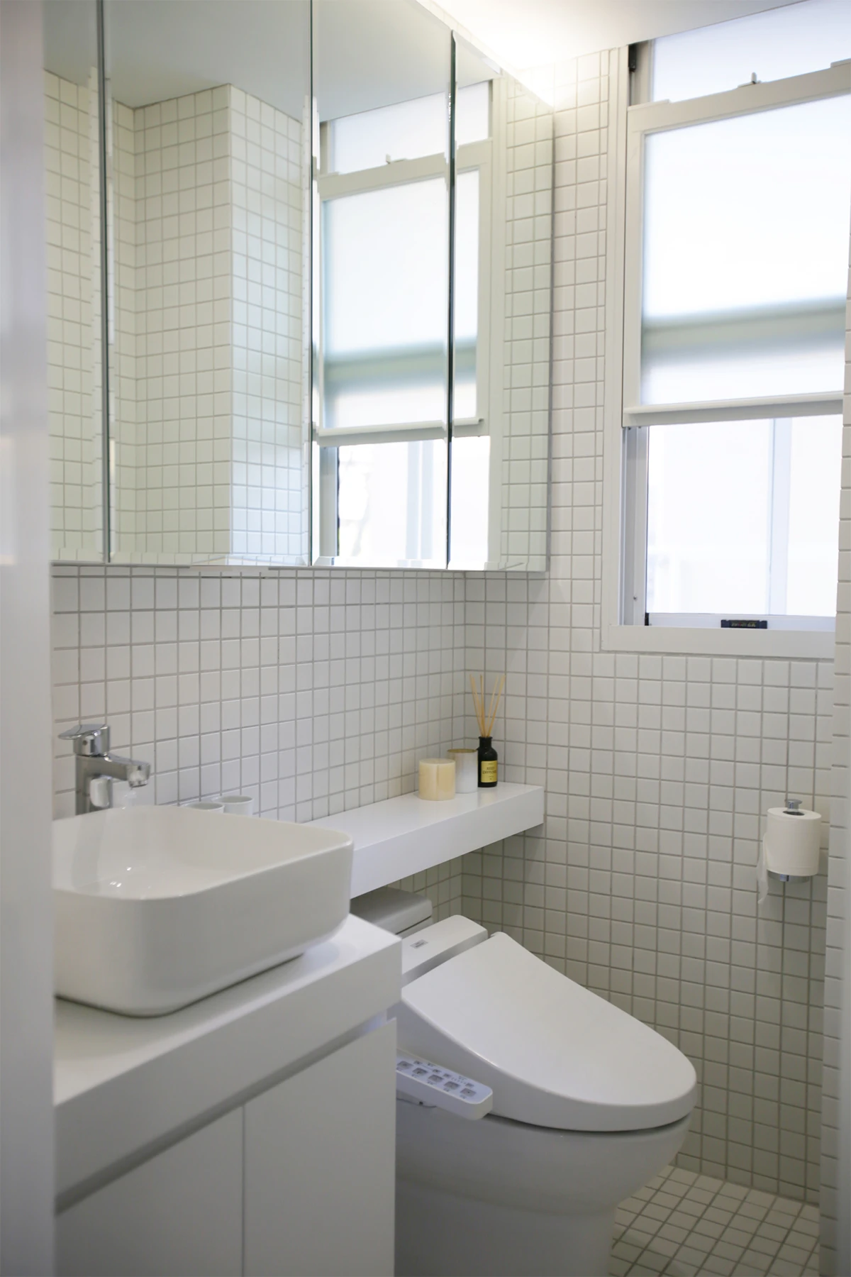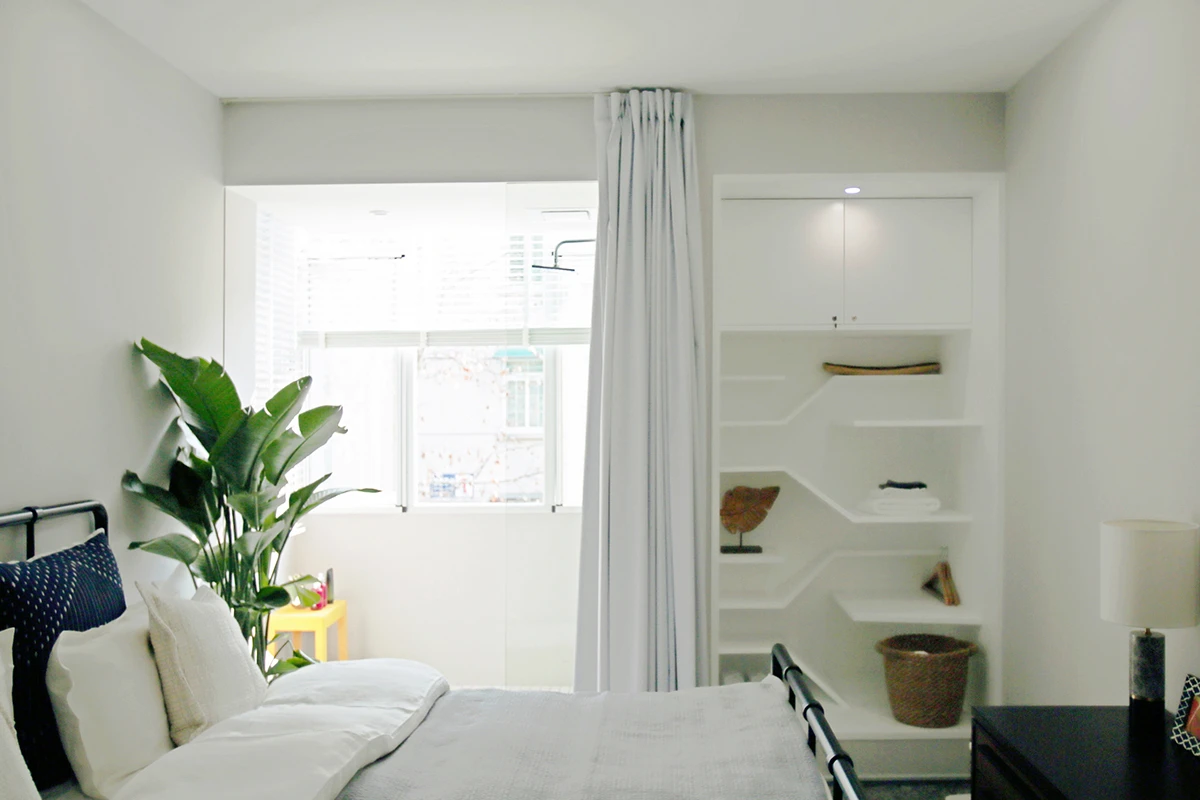 改造后的阳台是整个空间内最诗意的地方——浴室。窗外映着自然景致,而窗内是一屋子的氤氲水汽,仿佛是最惬意的阳台景象。阳台和壁橱原本是平行却各自封闭的空间。而现在呈现的是两种不同形式的开敞,虚掩(blur) 和外翻(inside-out)。两扇「门」都被重新定义。
