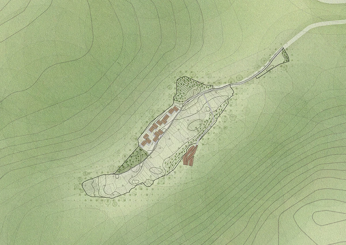 基地位于广西崇左天等县陇门屯内,属典型喀斯特地貌,亚热带季风气候。秘境之下的古村落保有自然独特的肌理感。以建筑空间为正,村落中的巷道、小径负空间更具有活力。