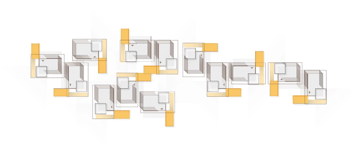这里村落被定义成一个复杂的建筑,所有的巷道、弄、单元空间外的剩余负型空间都是它内部的空间,存在各种行为互动的可能性及空间潜力。高台之上的行为暴露且明确,虽坐标位于但空间体验上不属于各个单元,而单元之间的交错空间虽然无法用坐标定义归属,但不只有一种空间属性“室外空间”。