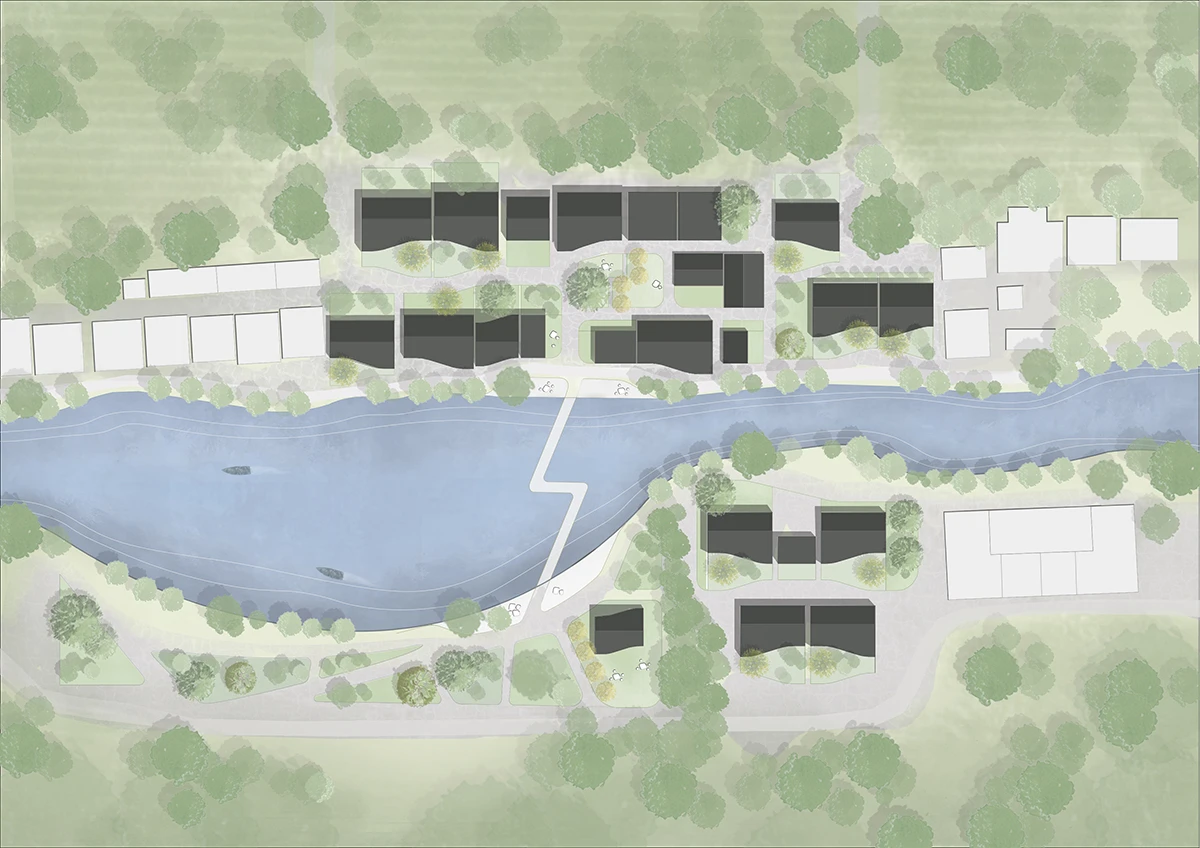 项目基地位于上海浦江镇丰收村。村落前段链接上海前滩国际商务区,背倚“浦江郊野公园”。「浦江·宿集」位于丰收村之后,自有一套村落肌理,餐饮、文创、休闲手作、图书馆、美食教堂、剧院、户外活动空间等形成民宿集群&田园文创聚落。