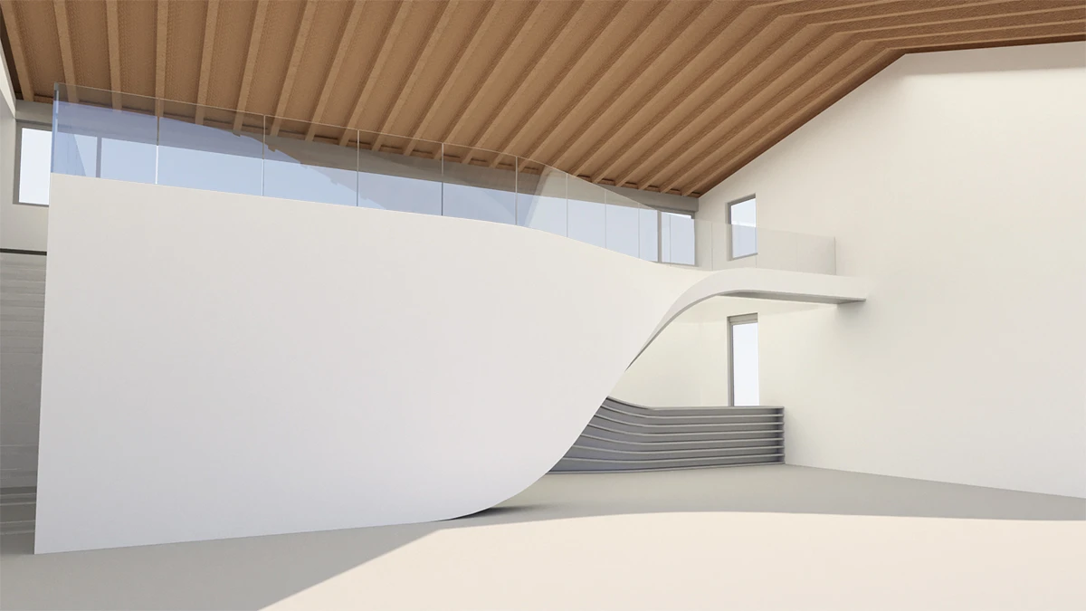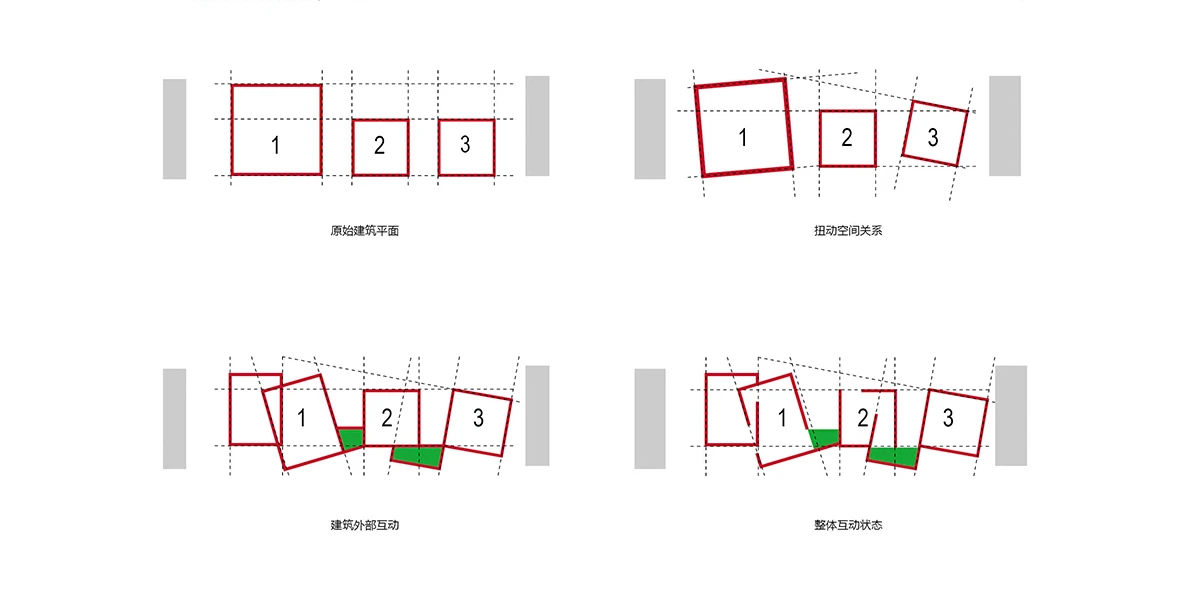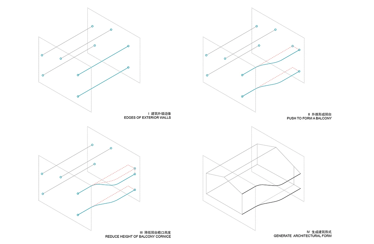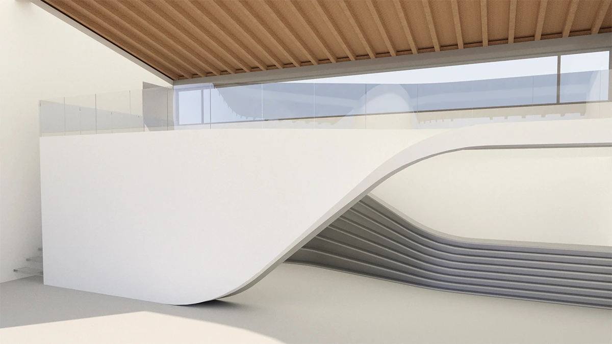 设计以传统村落形式为原型,用现代的手法重新转译为「浦江·宿集」特有的建筑形式。功能序列延续曲面的空间形体自然流动在建筑内部。