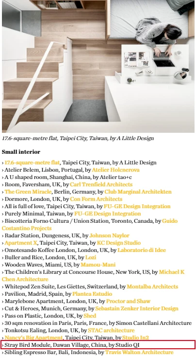 链接:https://www.dezeen.com/2019/07/09/dezeen-awards-2019-interiors-longlist/?utm_medium=email&utm_campaign=Dezeen%20Awards%202019%20longlists%20revealed%20all%20entrants&utm_content=Dezeen%20Awards%202019%20longlists%20revealed%20all%20entrants+CID_57db07c6fe126aa50a97df01e7f7fde1&utm_source=Dezeen%20Mail&utm_term=See%20the%20interiors%20longlist