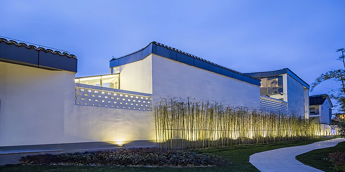 其设计将西塘古镇三维要素 ——“小桥、流水、人家”提炼融合,结合西塘民居建筑特点,让各个空间互相堆叠、相互错动。空间之间以桥联系,进退过程中自然形成天井、观台、竹道、庭院。在建筑中,随处可见丰富且饶有趣味的水乡元素空间体验。