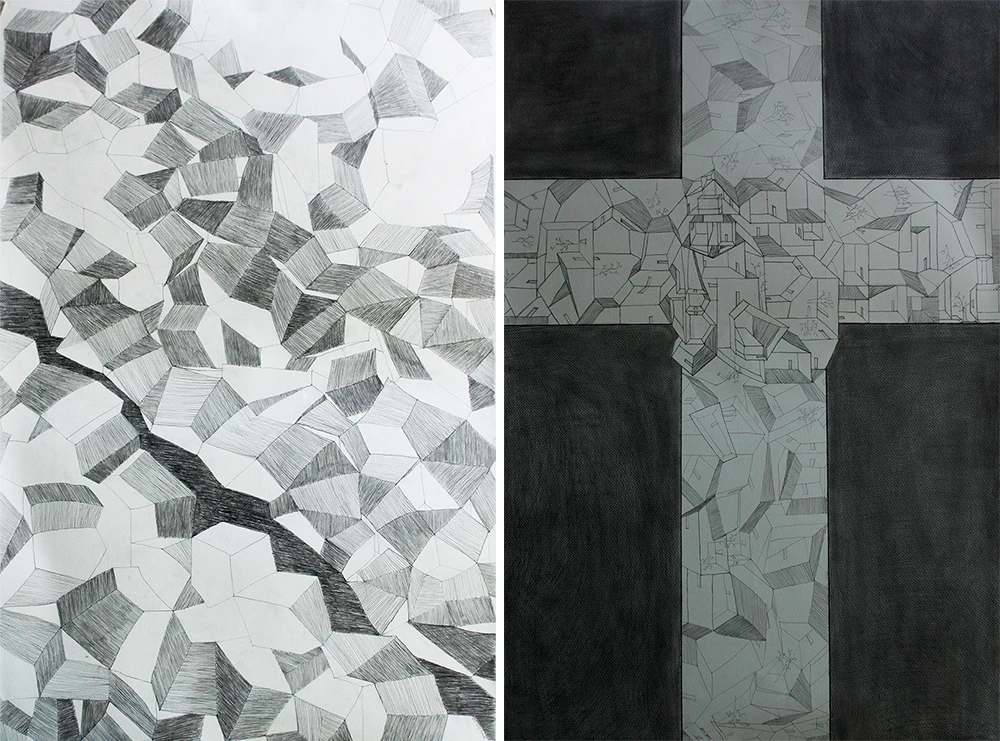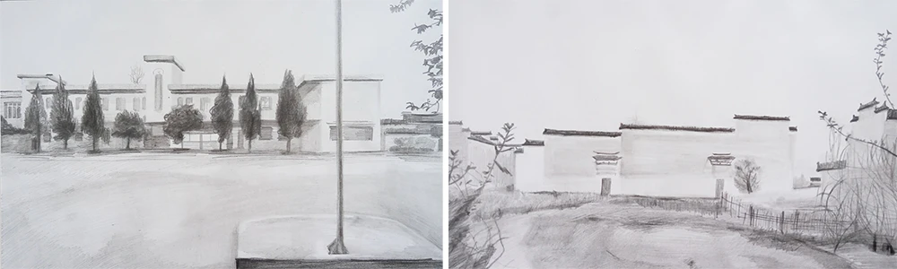 《瓦中巷》《山中客》 (545×790mm, 铅笔)