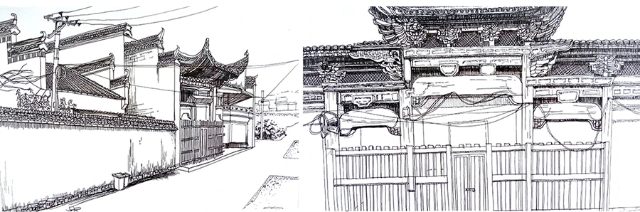 场地选址在安徽黟县龙江村的何氏宗祠。祠堂是一种乡村血缘及宗族文化的载体,代表当时的一种信仰。损毁宗教类公共建筑是文革的历史符号。对祠堂的全盘否定以及肆无忌惮的加以破坏,凸显的不仅仅是物质的摧毁问题,而是社会的反常,文明价值的扭曲,文化的倒退。其次,该祠堂虽然在文革时期遭到大肆破坏,但主体结构还算保留完整,仍然具备再次焕发生机的希望。而祠堂周围正好是一个小学(黟县龙江中心小学)和一个幼儿园(龙川幼儿园),这成为选择这个场地最重要的原因。