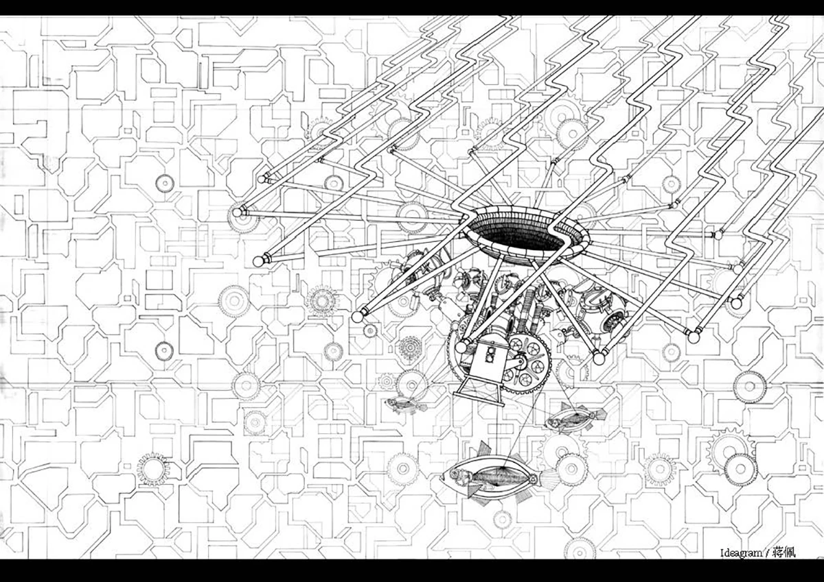 最终,四种表达媒介:文字(小说 / Fiction)、视觉(绘画 / Ideagram)、实体(装置 / Installation)、空间(建筑 / Architecture),并不是环环相扣的线性承接,任何一者都不构成另一者的补充阐释,而是以新的态度和立场重新构筑一个「“另” 世界」。我想,这些与王欣老师提到的“文章、山水画、玩器都是现实造园的思想实验”,它们“之间平行互源,却不可互相替代。”