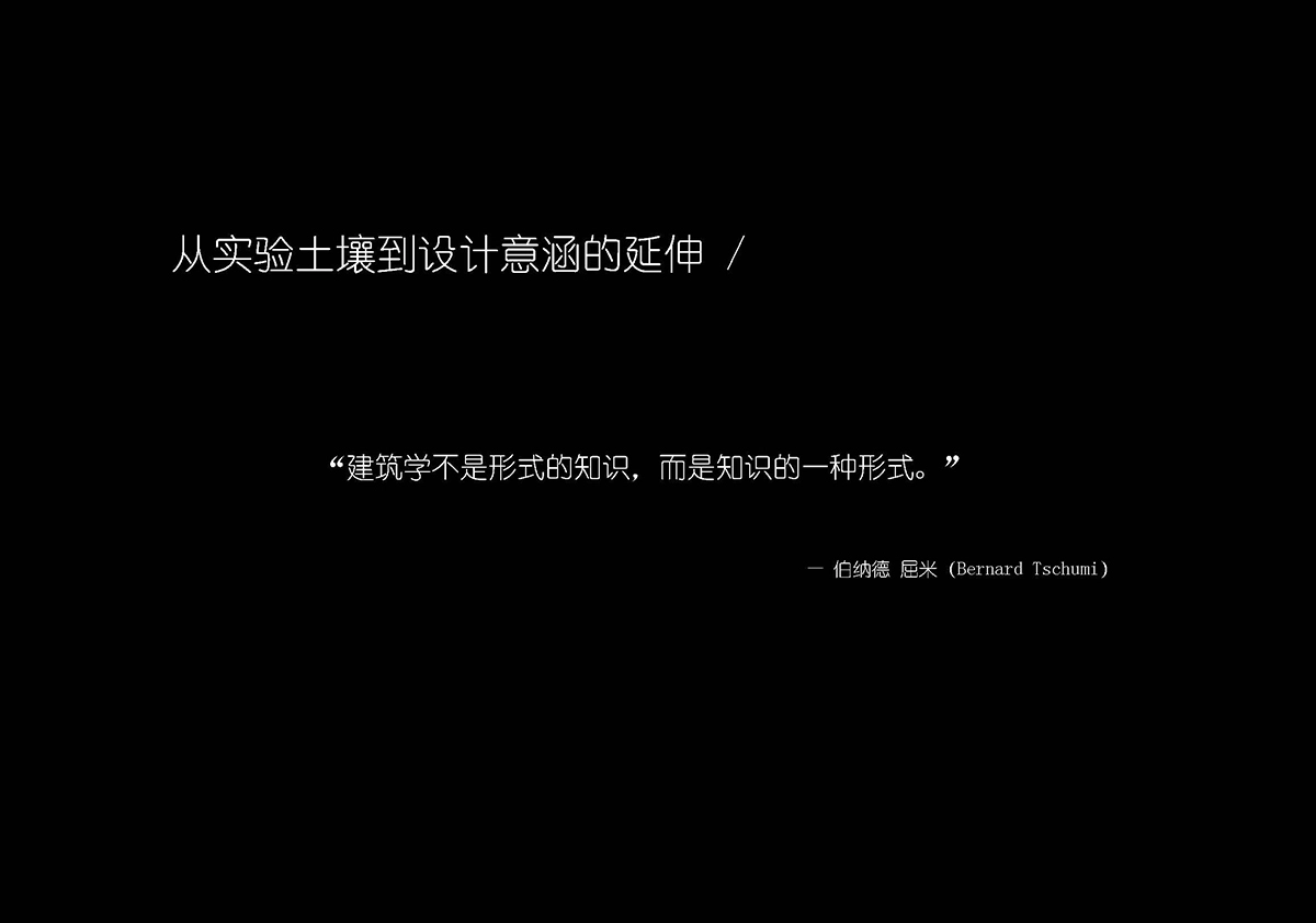在结尾,想用Bernard Tschumi的一句话,“建筑学并不是有关形式的知识,而是知识的一种形式。”我们可以通过其他方式去探索世界,反过来说,就好比电影导演,艺术家也可以作为建筑师来观察这个世界。就像王欣老师所讲,山水画系也可以通过建筑,又反馈得到一些什么。总之,建筑师应是思想家,才能创造生产力。