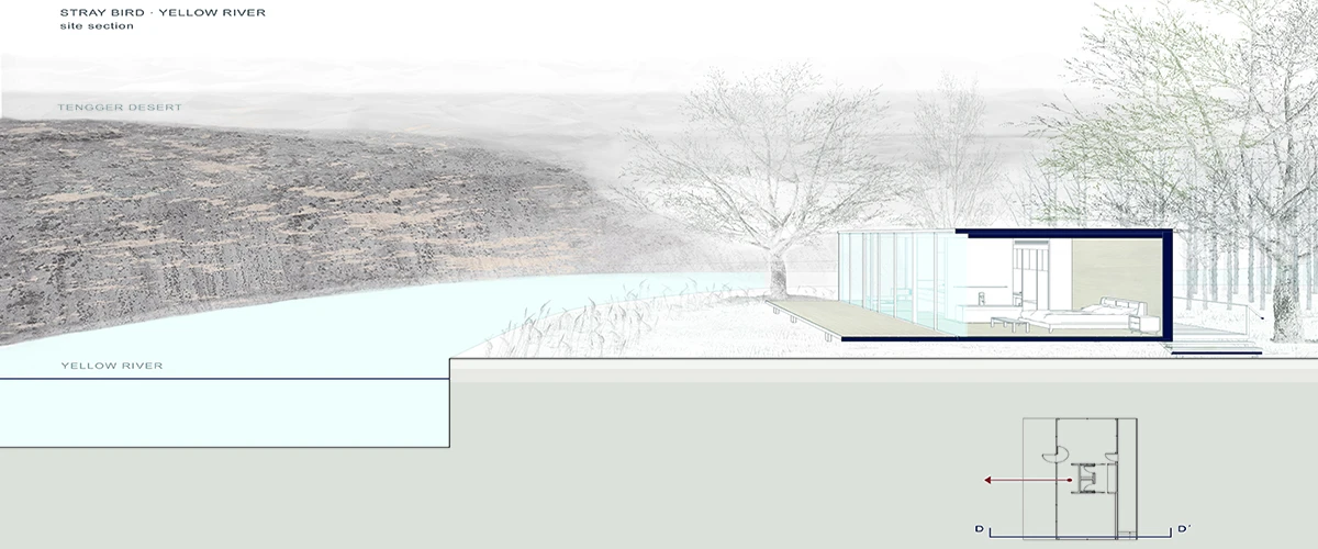 本次设计的场地坐落在黄河边,有着极其明显地域特征,西北大地奇特的自然地貌,像极一幅层层晕开的画,人们可以弹指之间,在地图上找到这颗“珍贵的绿洲”。