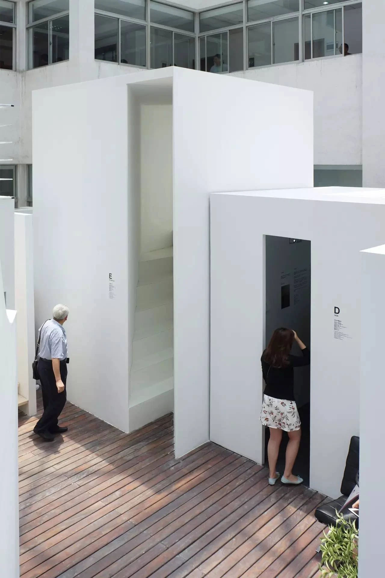 在六月的这个周末里举办了一系列以“建微知筑”为主题的活动,以展览、讲座、座谈会等形式探讨了当代江南地区,乃至东方与西方建筑行业中以小见美,追求人与空间、建筑与自然建立更为亲密关系的想法与实践。“建微知筑——小而精建筑作品联展”选址在浙江大学西溪校区逸夫楼内一个14x16x12米的通高采光厅内,空间里设置了9个3x3x3米的白色方盒子作为各参展事务所的独立展厅,9家建筑设计事务所/工作室,结合自身参展项目的特点,给出了9种不同的回答。